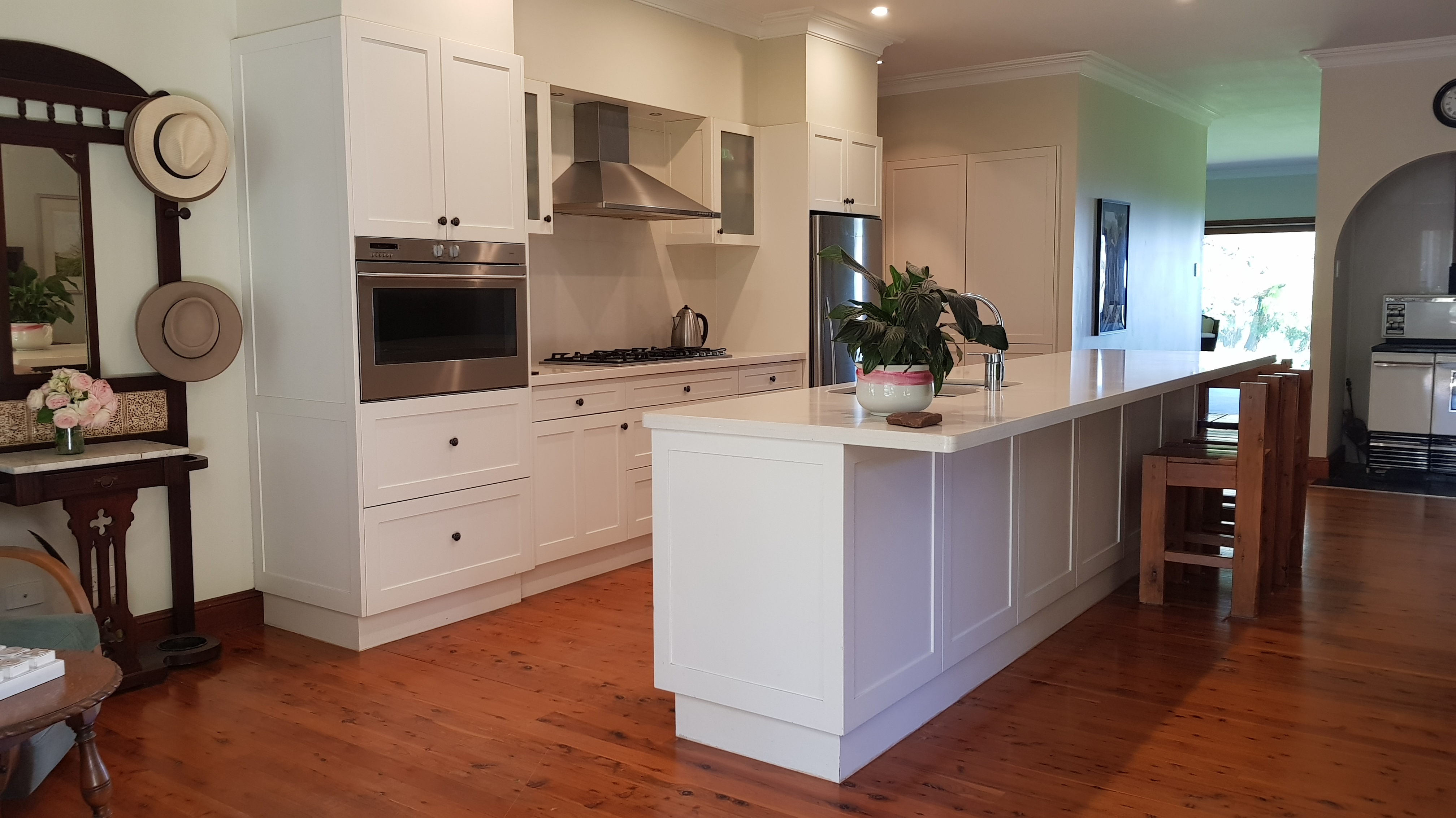 Homestead: The "Makiwa" homestead has been renovated to offer a spacious open-plan living area with four bedrooms, two bathrooms, an office, and a laundry/mudroom, totaling approximately 410 square meters. Modern amenities such as ducted evaporative air conditioning, a slow combustion wood stove, and a large wood fire burner ensure year-round comfort. Situated amidst established trees, lawns, and gardens, the homestead provides a serene sanctuary. It features raised vegetable beds and an enclosed chook run allowing a self-sufficient lifestyle. Adjacent to the homestead is a two-car garage with a 6' x 6' coolroom